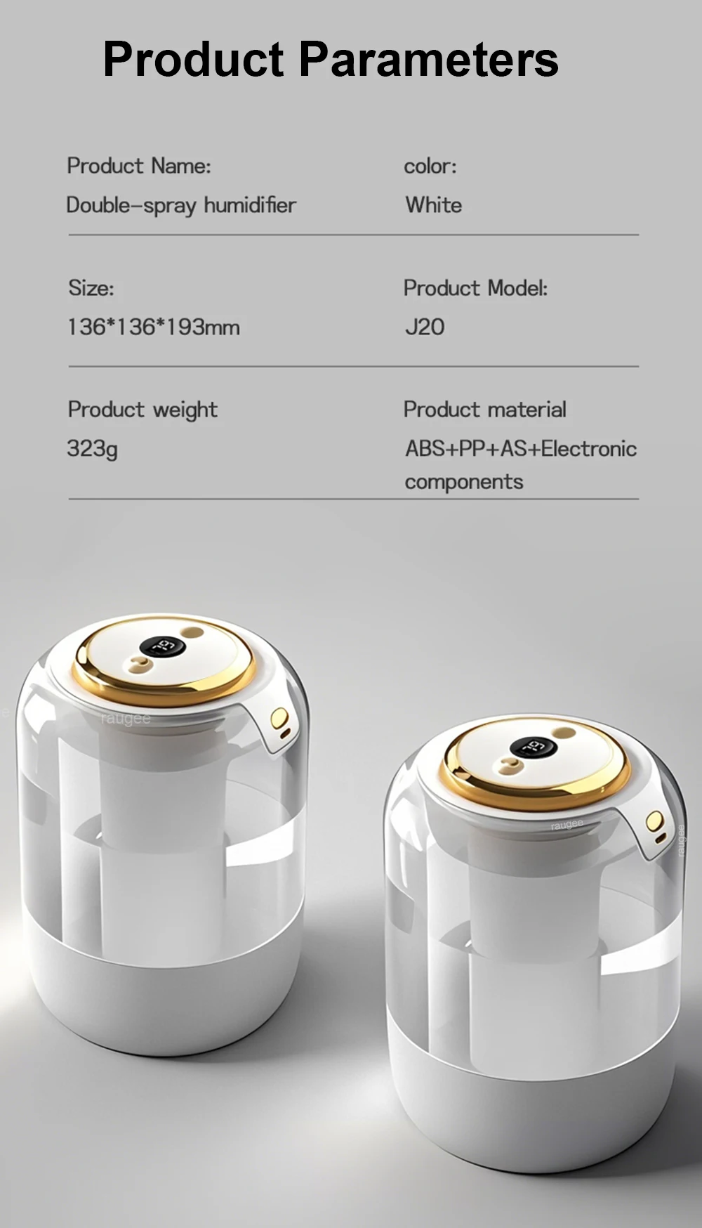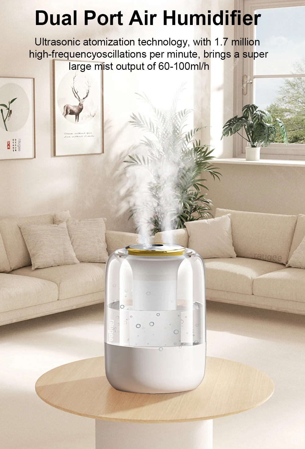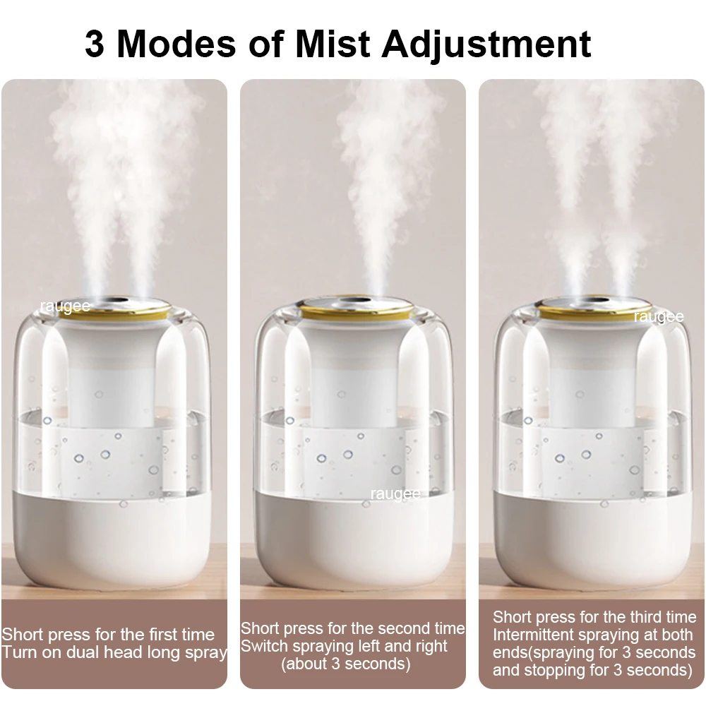 가습기 2.2L 대용량 가정용 가습기 음소거 미스트 메이커 LED 야간 조명이있는 침실 용 이중 노즐 Usb 가습기