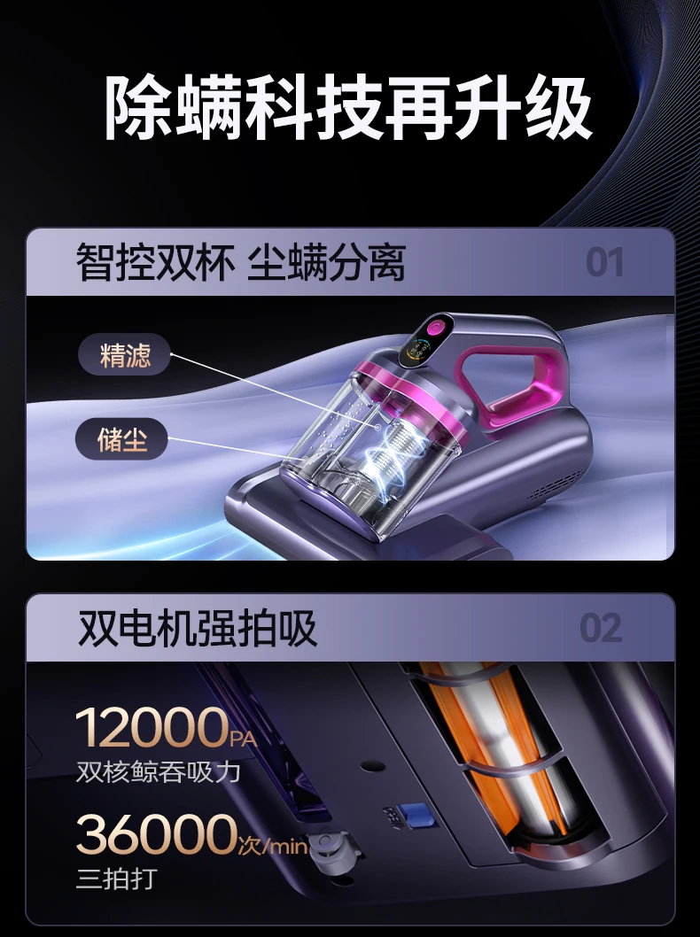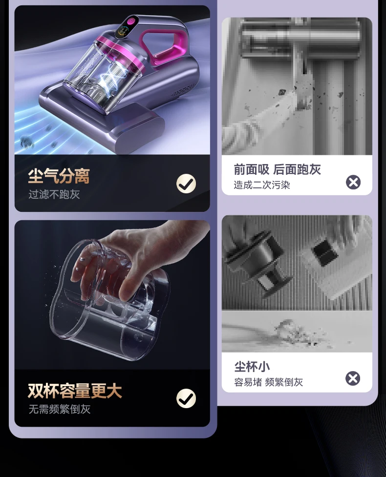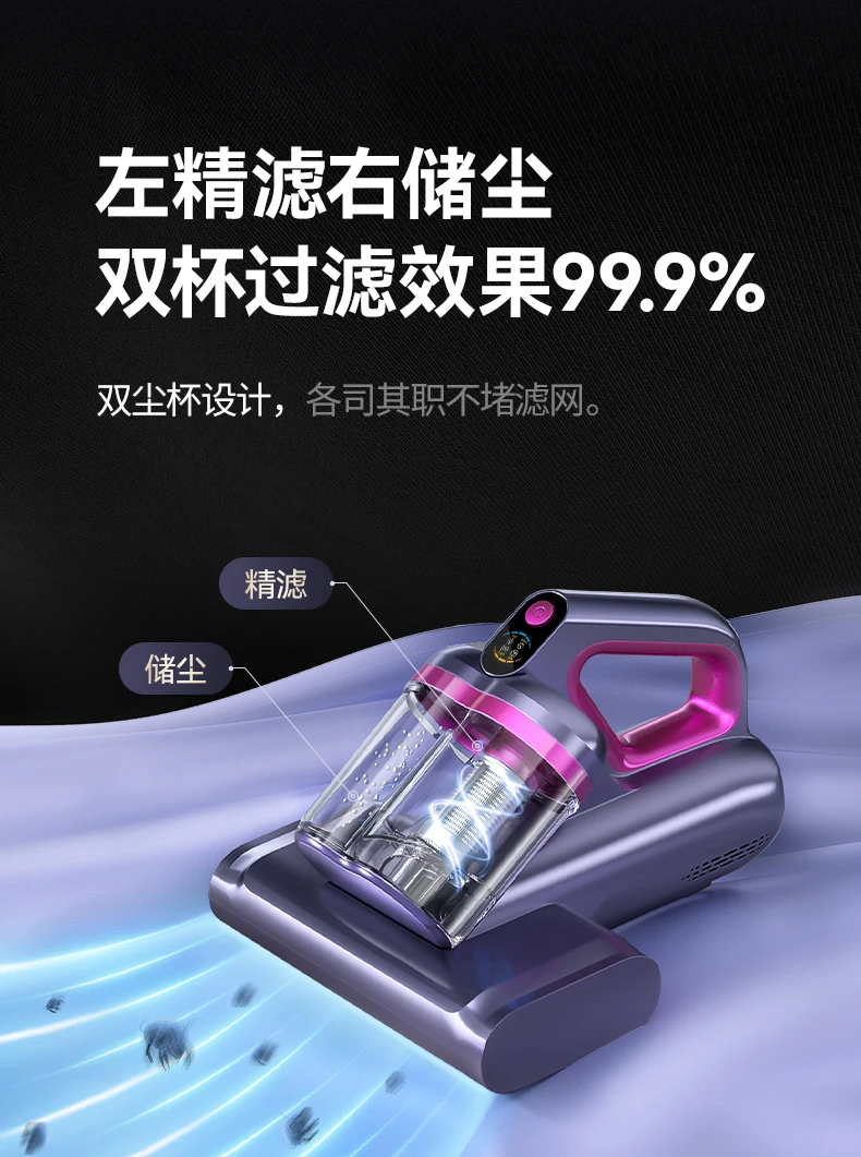 더블 컵 진드기 제거제, 침대 진공 청소기, 가정용 핸드 헬드 진드기 제거제, 새로운 대형 흡입 진드기 제거제, 살균