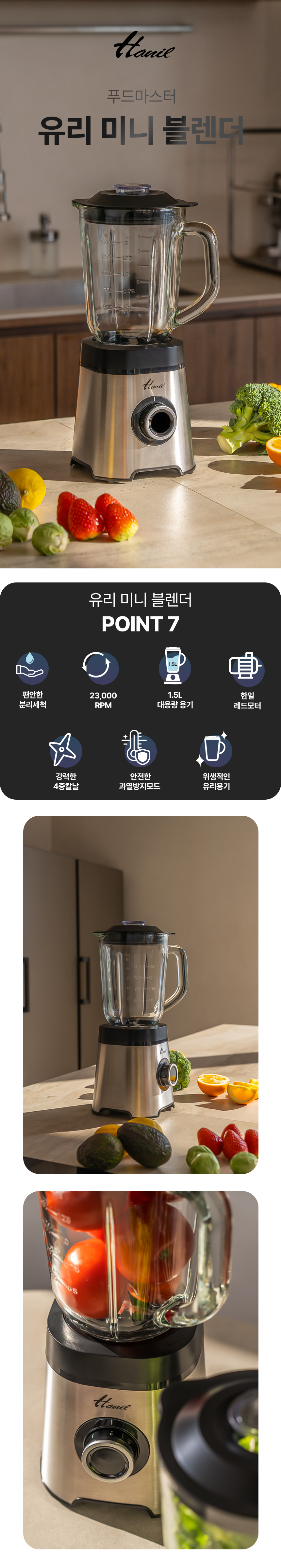 [투데이특가] 한일 믹서기 1.5L 유리 분쇄기 간편조작 분리세척 블렌더 쥬서 SHM-1595