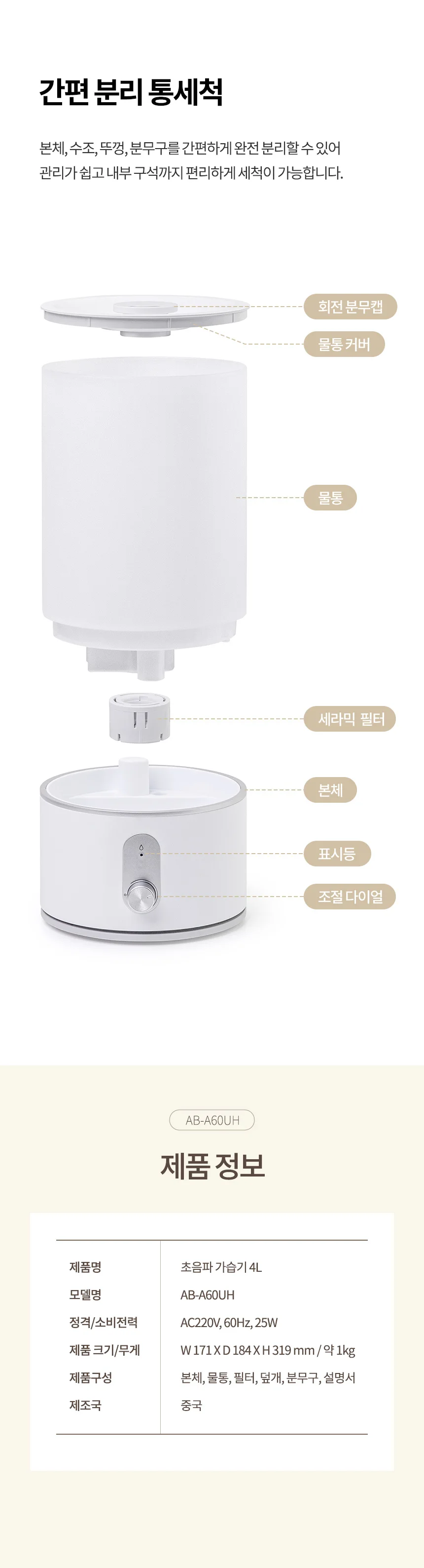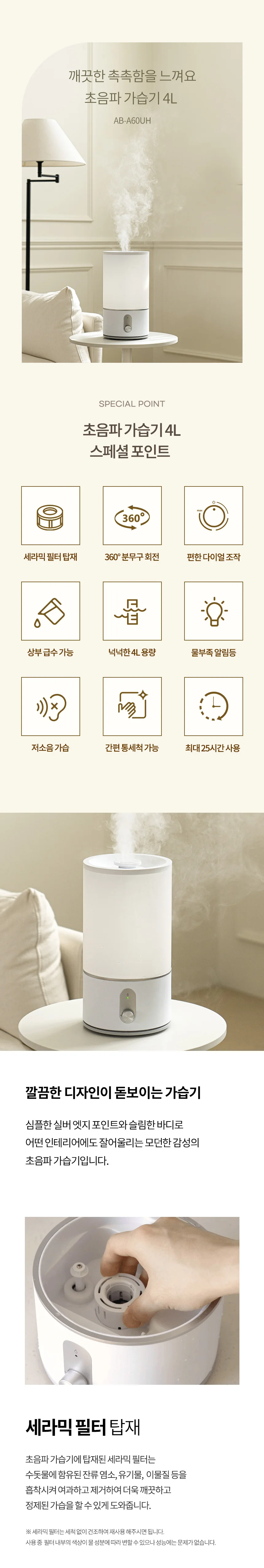 4L 가습기 대용량 초음파 humidifier