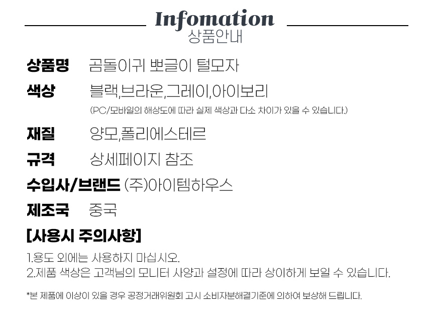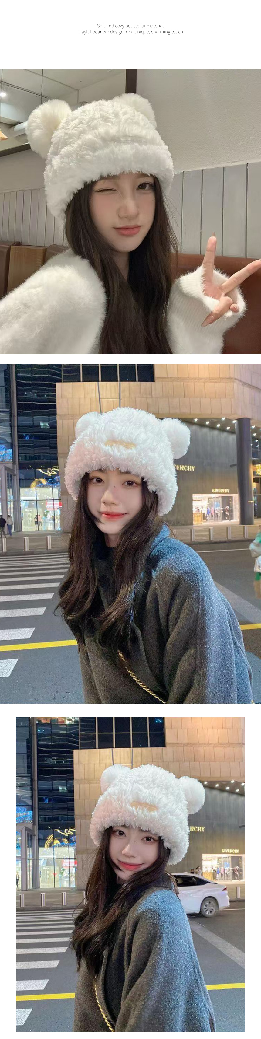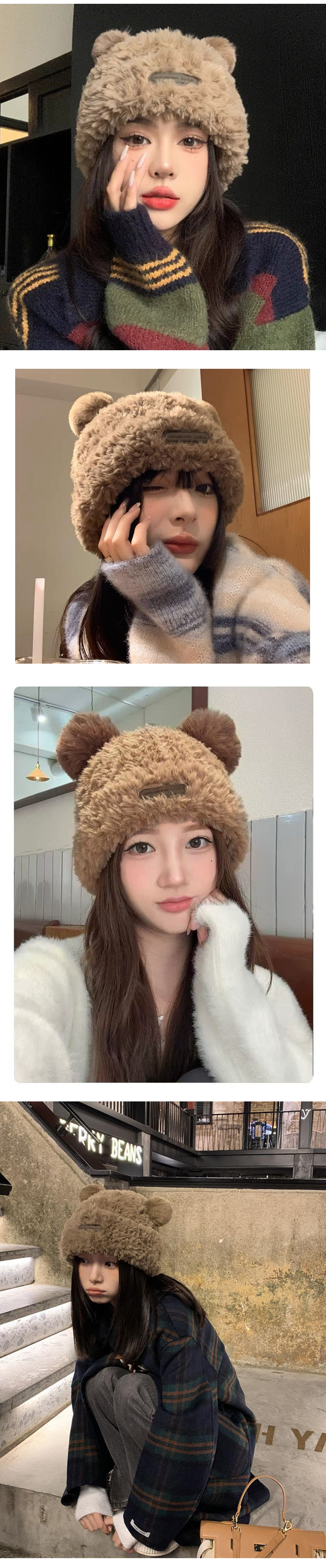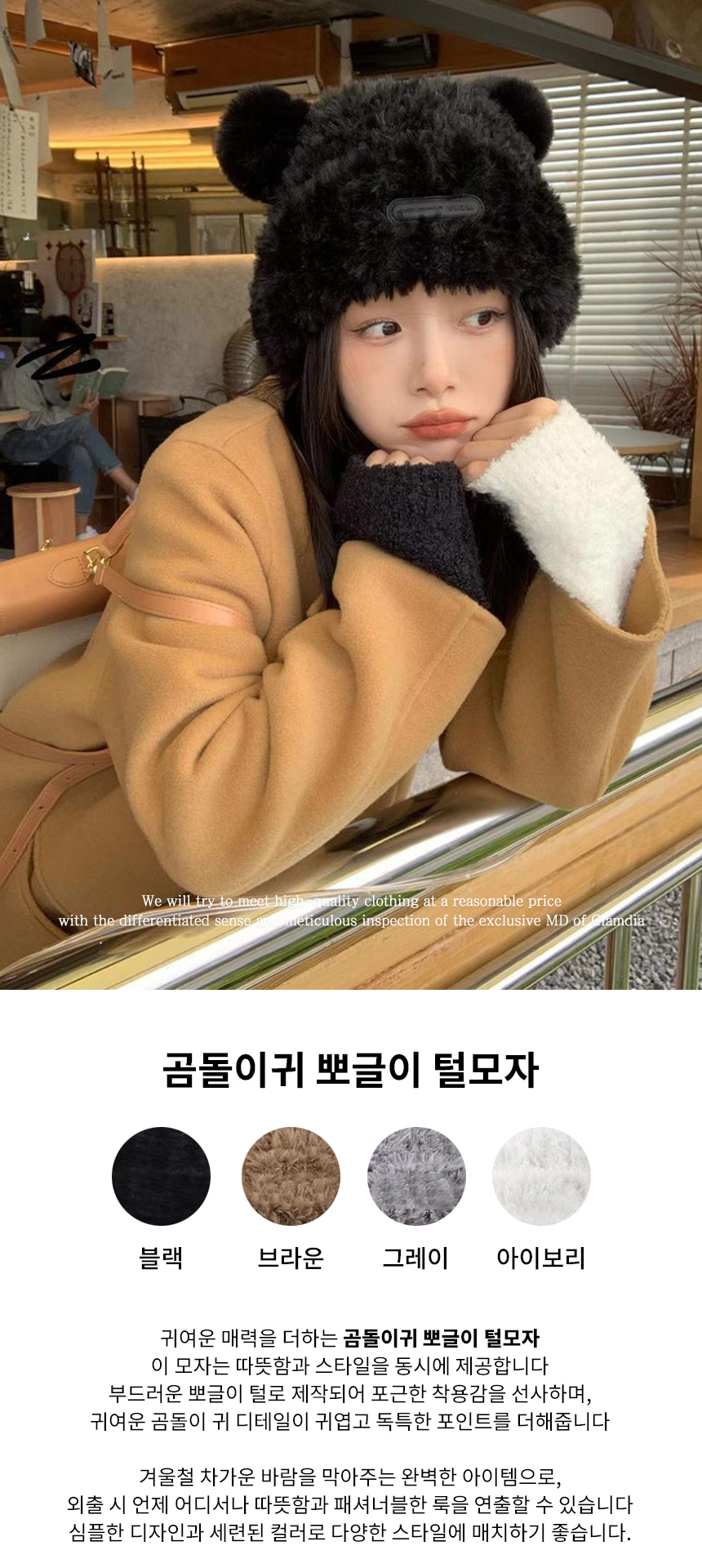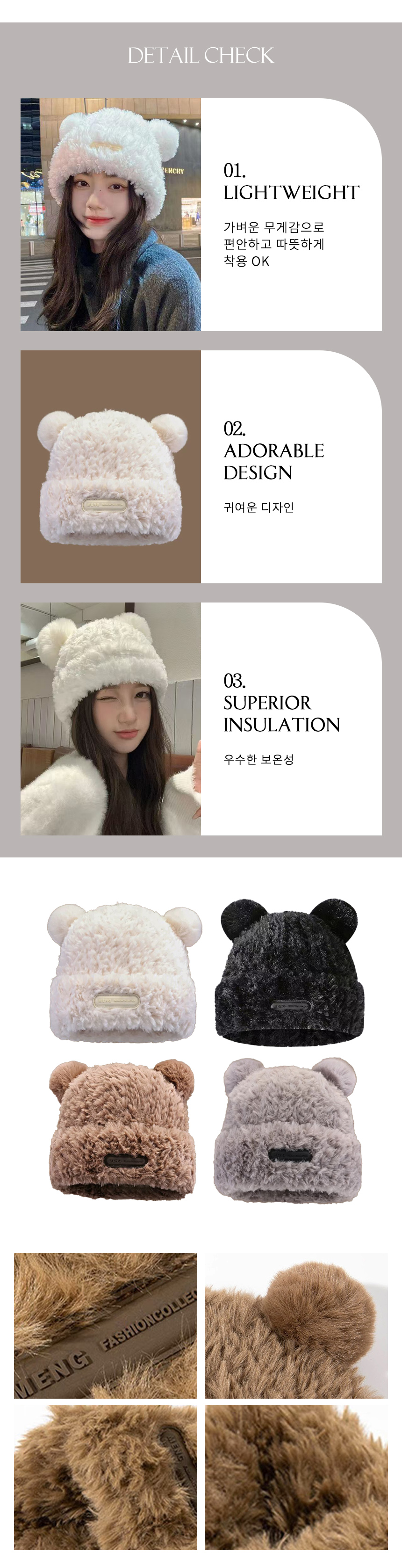 겨울 귀여운 곰돌이귀 뽀글이 털모자 방한 비니 곰돌이모자
