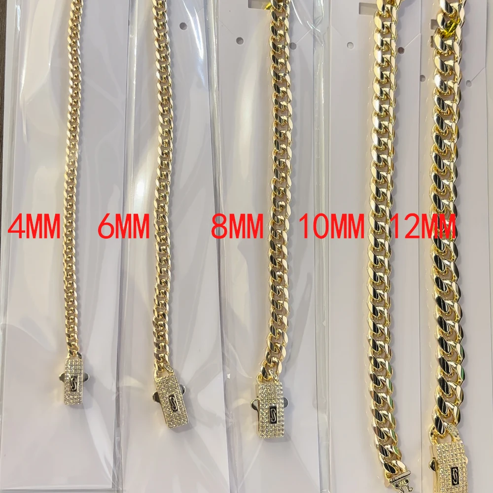 모나코 발목 6mm 쿠바 체인 여성용 발목 구리 소재 전기 도금 14k 골드 남성용 발목 길이를 사용자 정의 할 수 있습니다