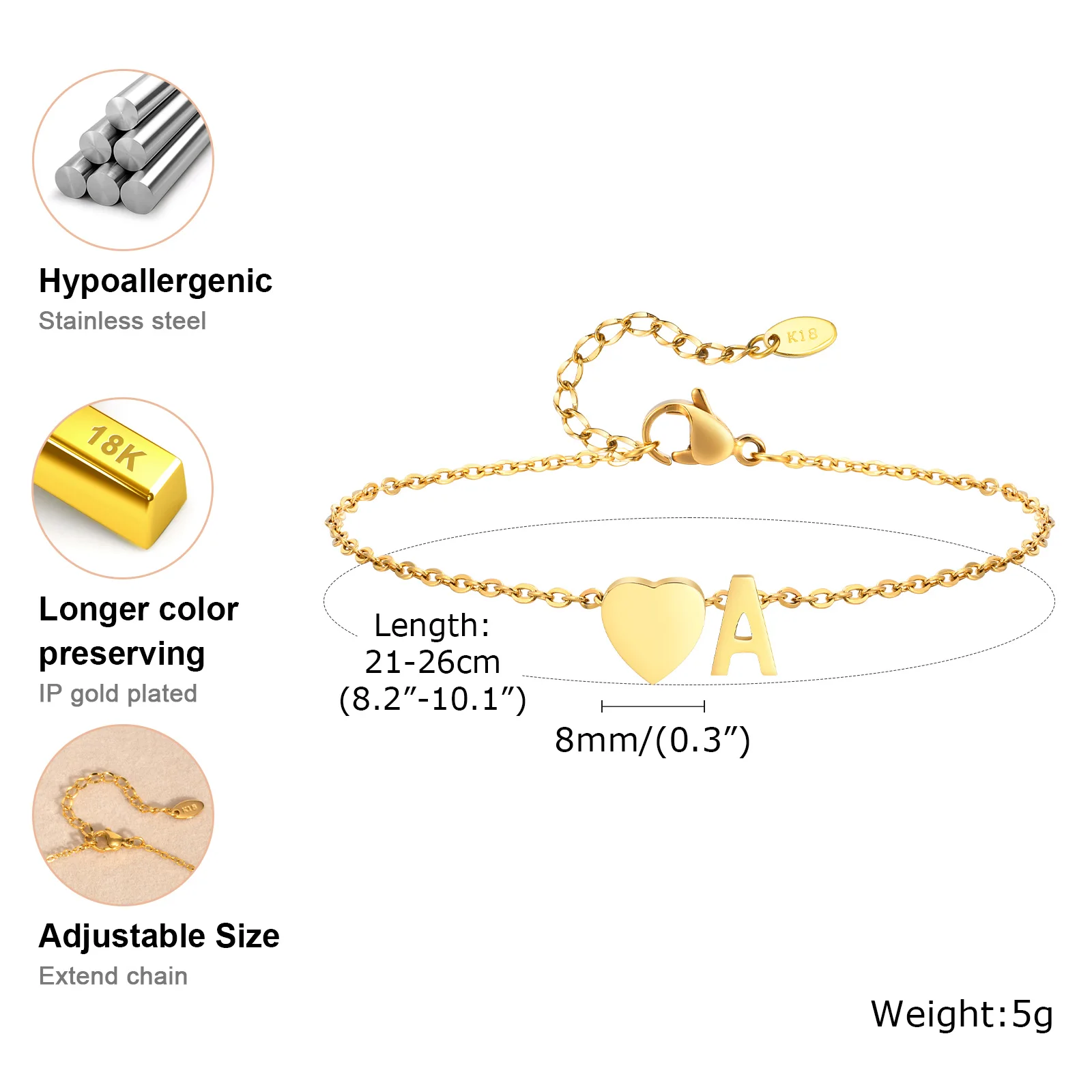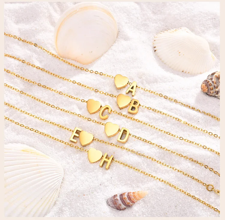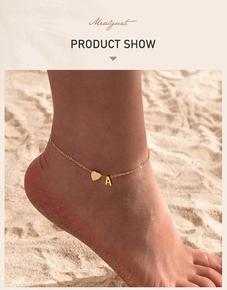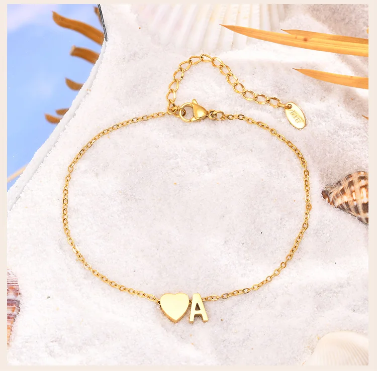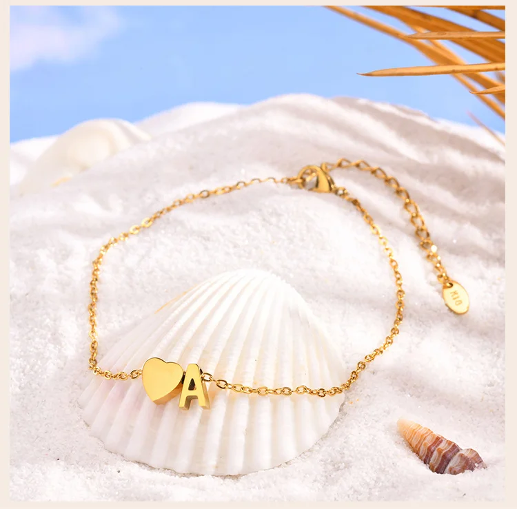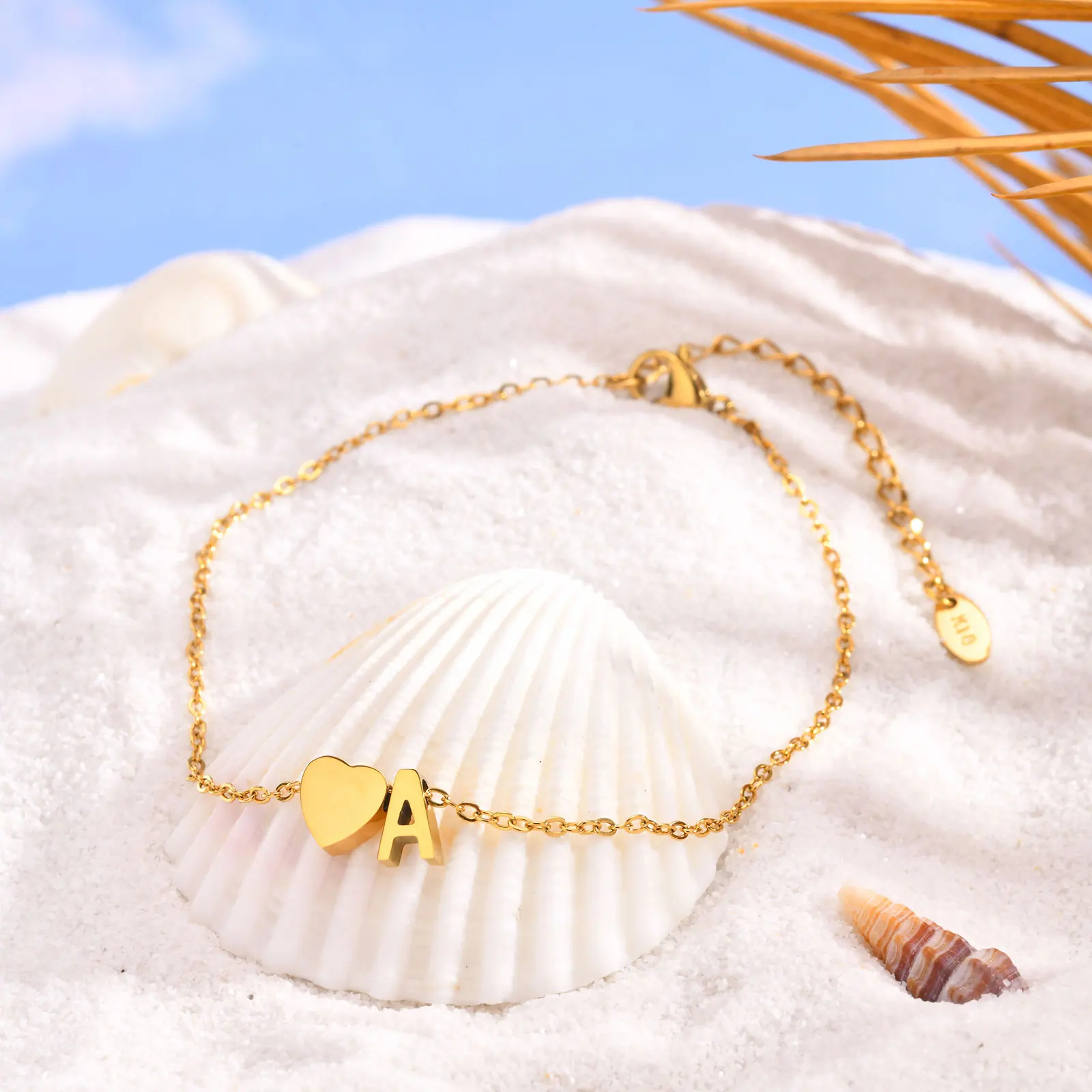 여성용 하트 이니셜 발찌 팔찌, 조절식 비치 쥬얼리, 저자극성 스테인리스 스틸, 맞춤형 이름 발 체인