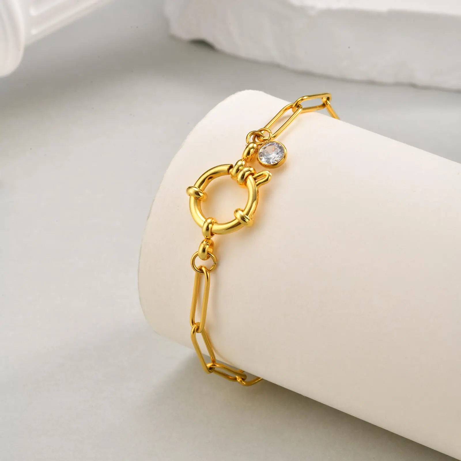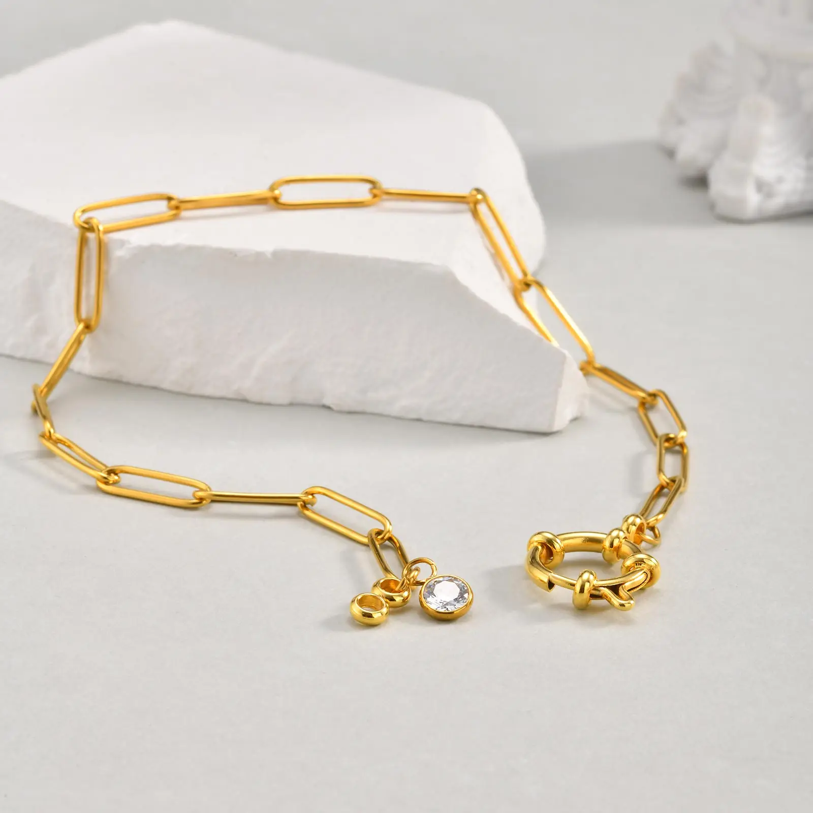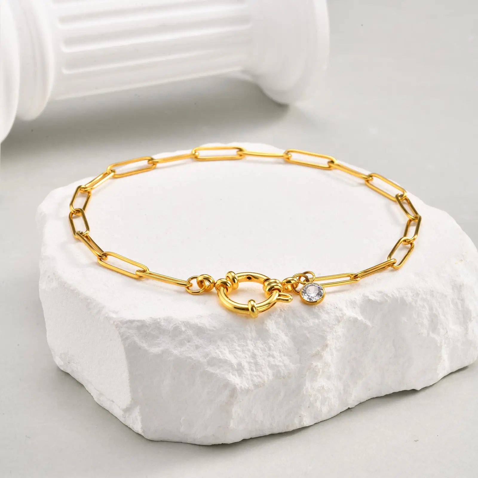 여성을위한 봄 걸쇠 체인 발목 팔찌, 스테인레스 스틸 종이 클립 링크 지르콘 발목 팔찌, 방수 패션 발 보석 선물