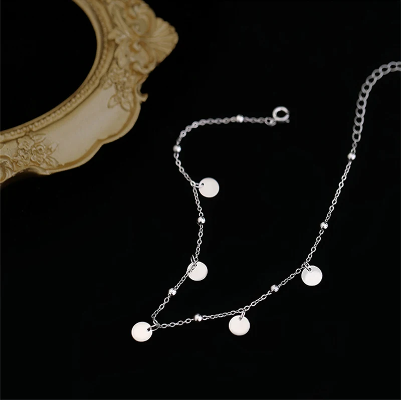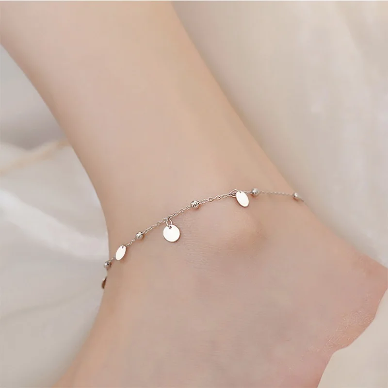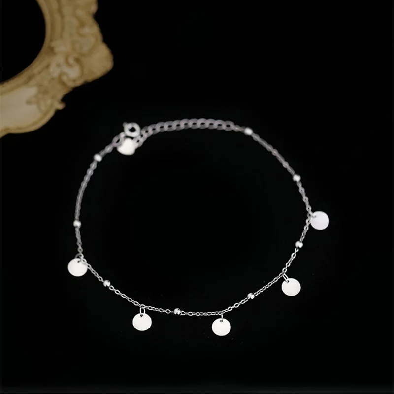 여성 발 보석을 위한 925 스털링 실버 매력적인 디스크 체인 발목 팔찌