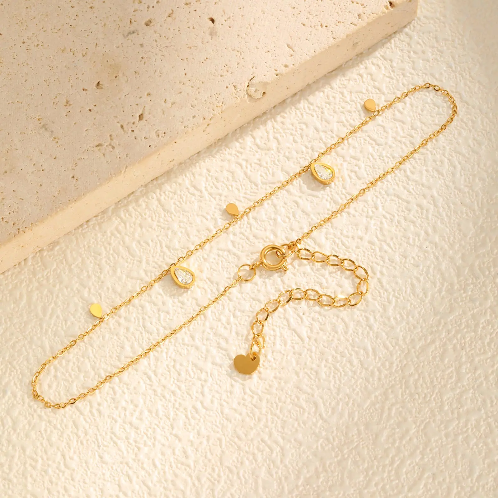 여자를위한 스테인레스 스틸 워터 드롭 지르콘 구두 소녀, 골드 컬러 간단한 발 체인 발목 팔찌 쥬얼리 여름 액세서리