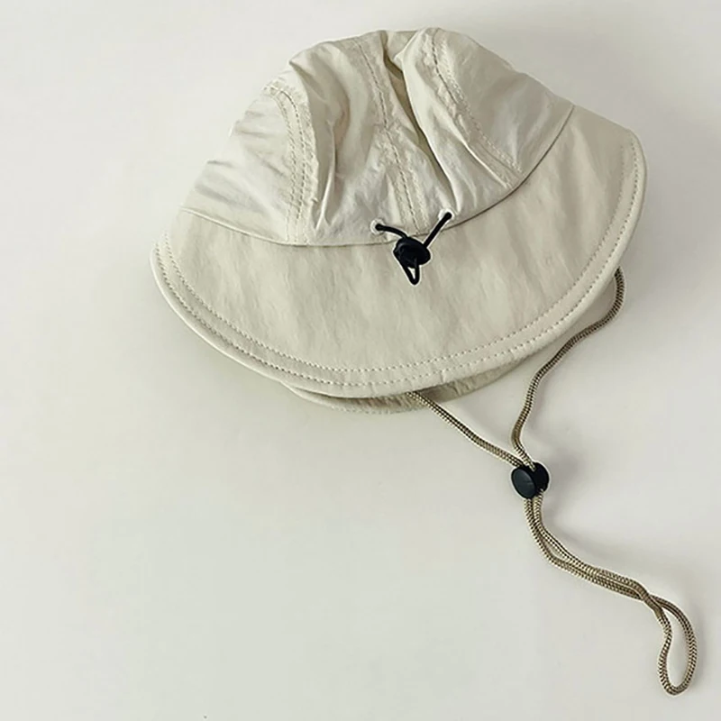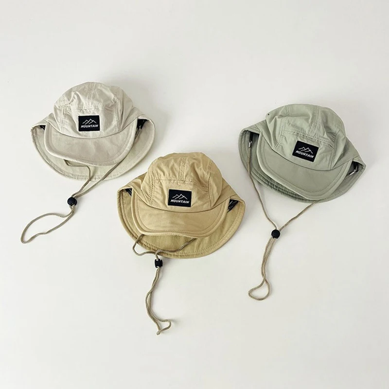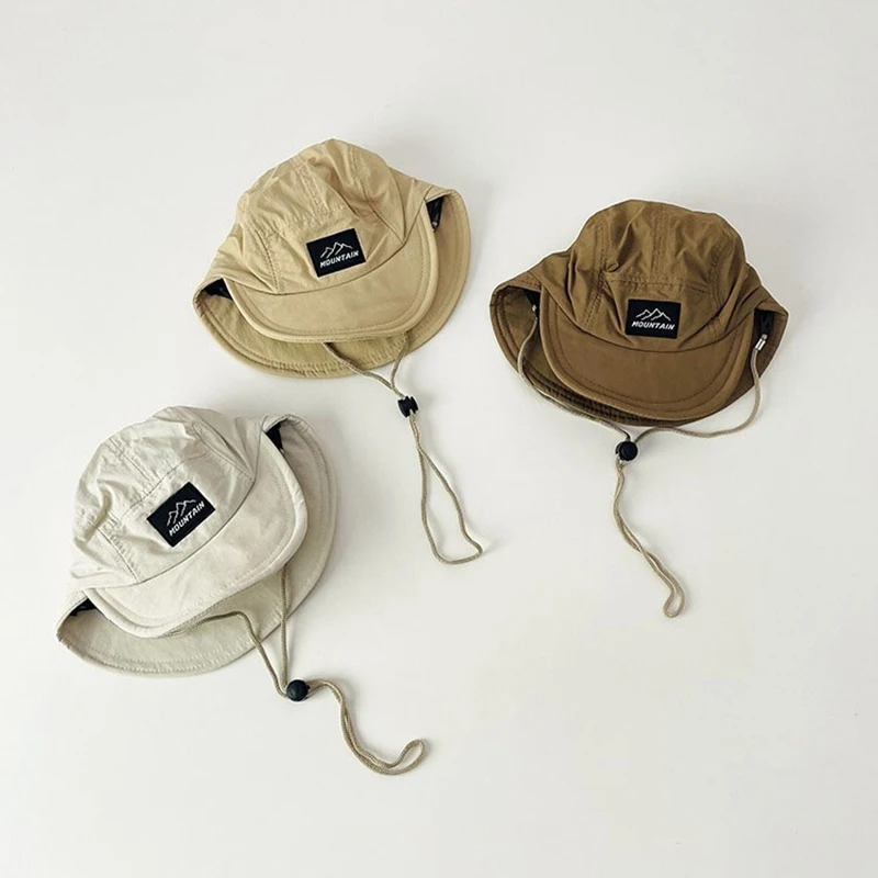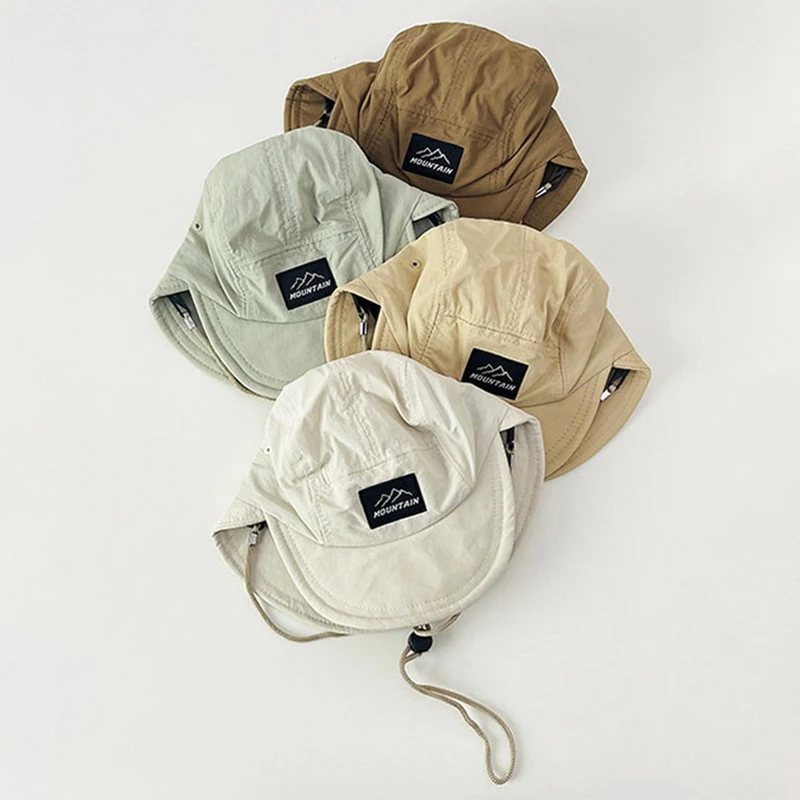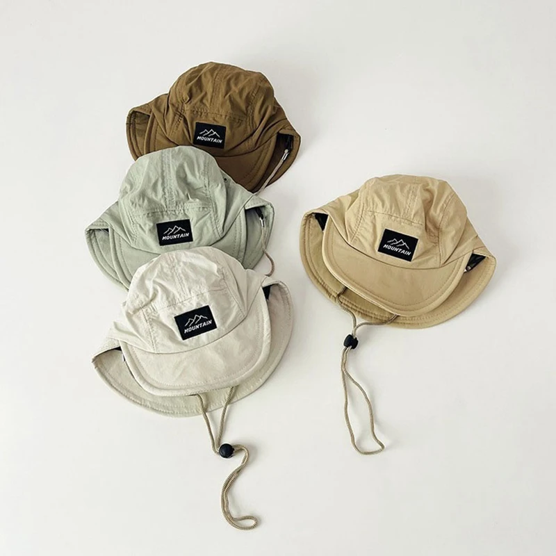 이중 챙이 있는 소년용 여름 모자, 아기 속건성 오리 부리 모자, 넥 스트랩 조절기가 있는 경량 태양 버킷 모자