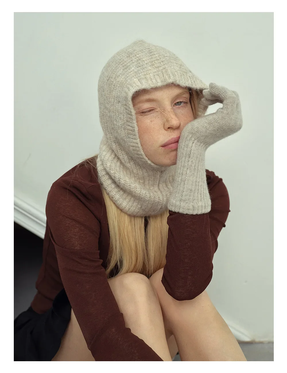 캐시미어 바라클라바 모자 여성, 알파카 울 비니, 가을 겨울