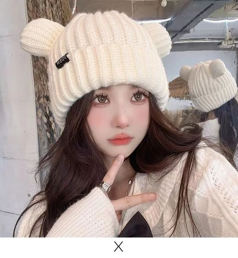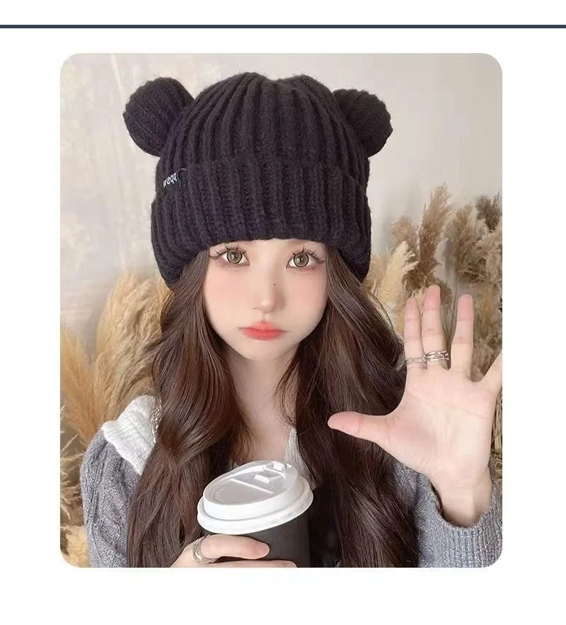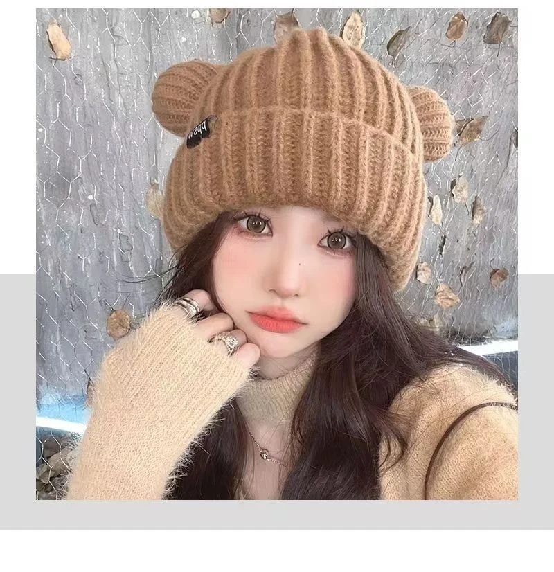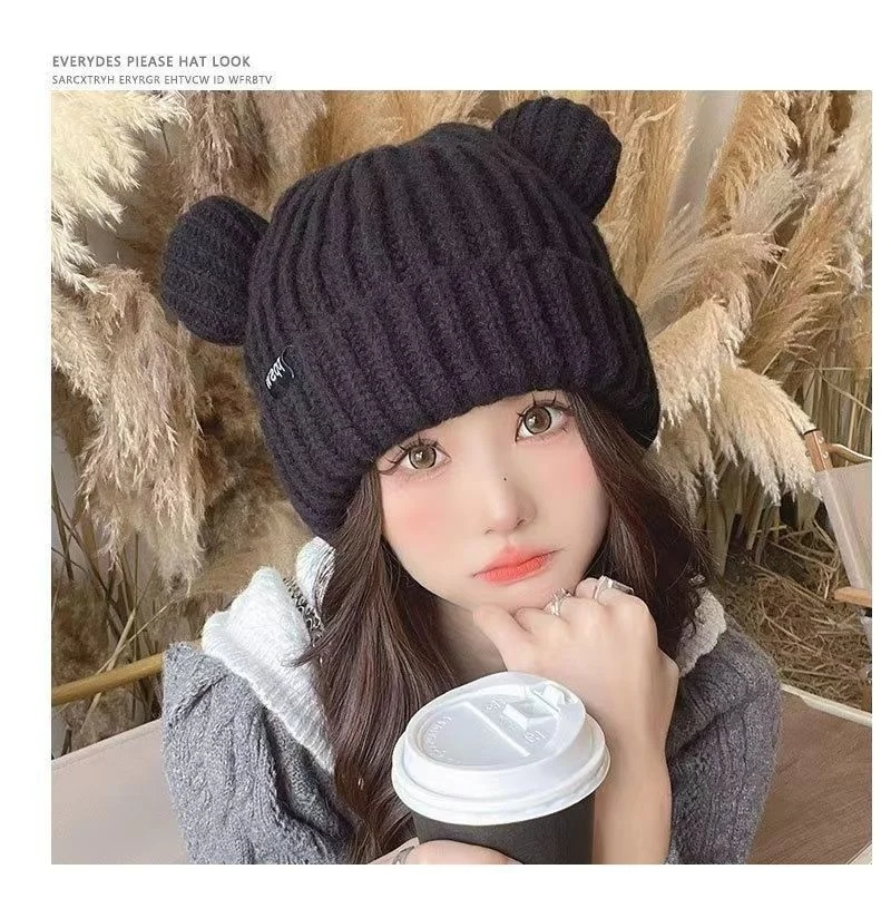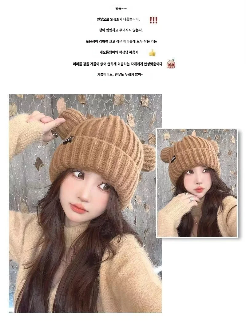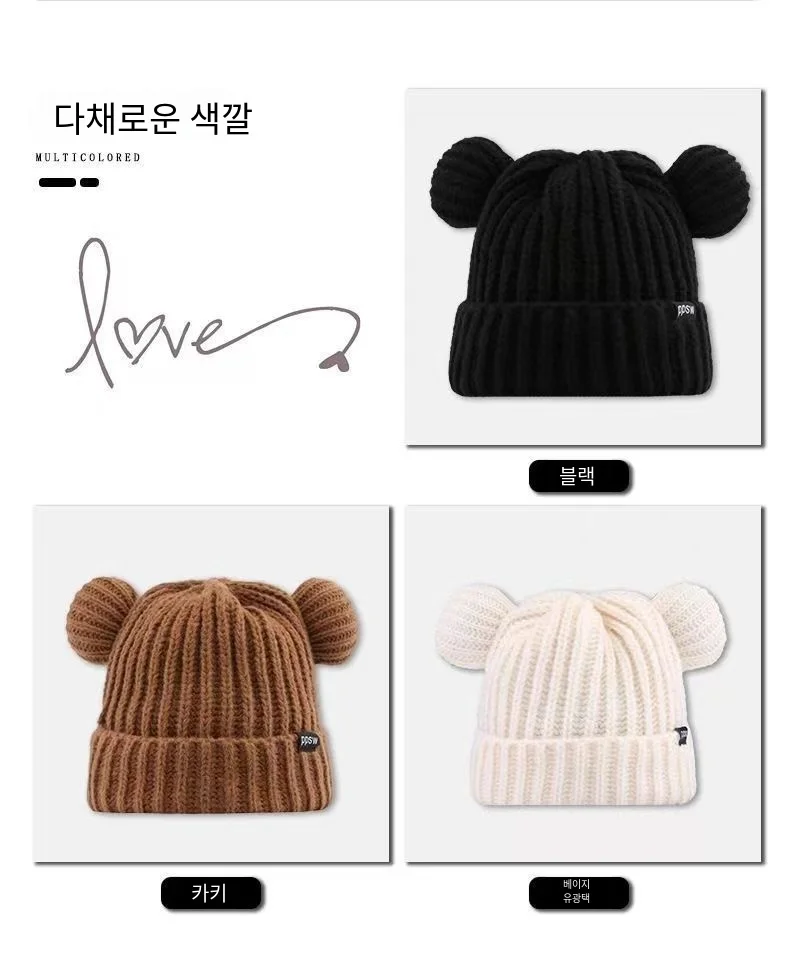 큐티 기모 도톰 핫모자 니트 비니 여 추동 고양이 귀모자