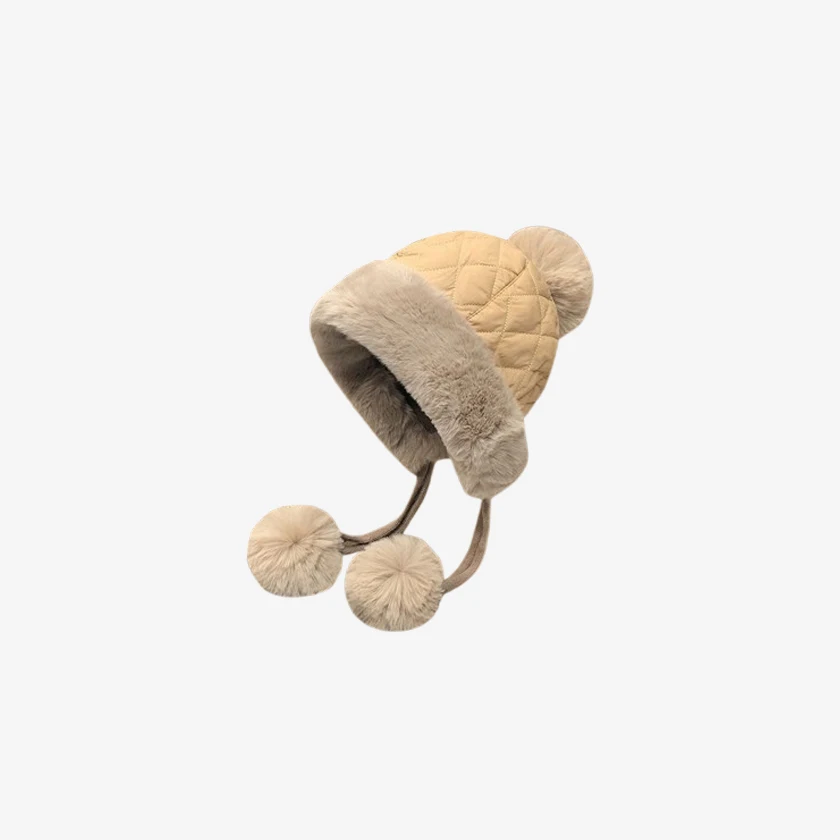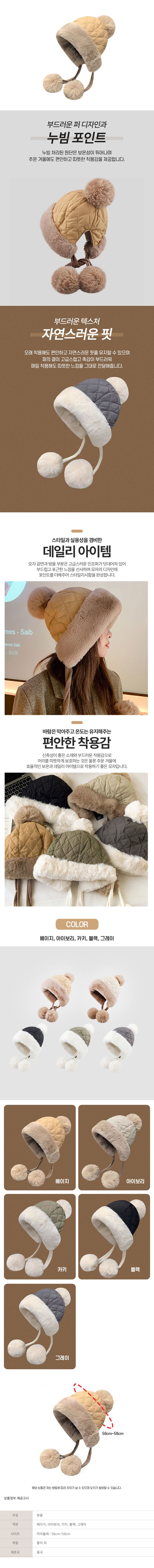 [트윈스파파] 누빔 포인트 페이크 퍼 여성 방울 털 모자(P0000TRC/5컬러)