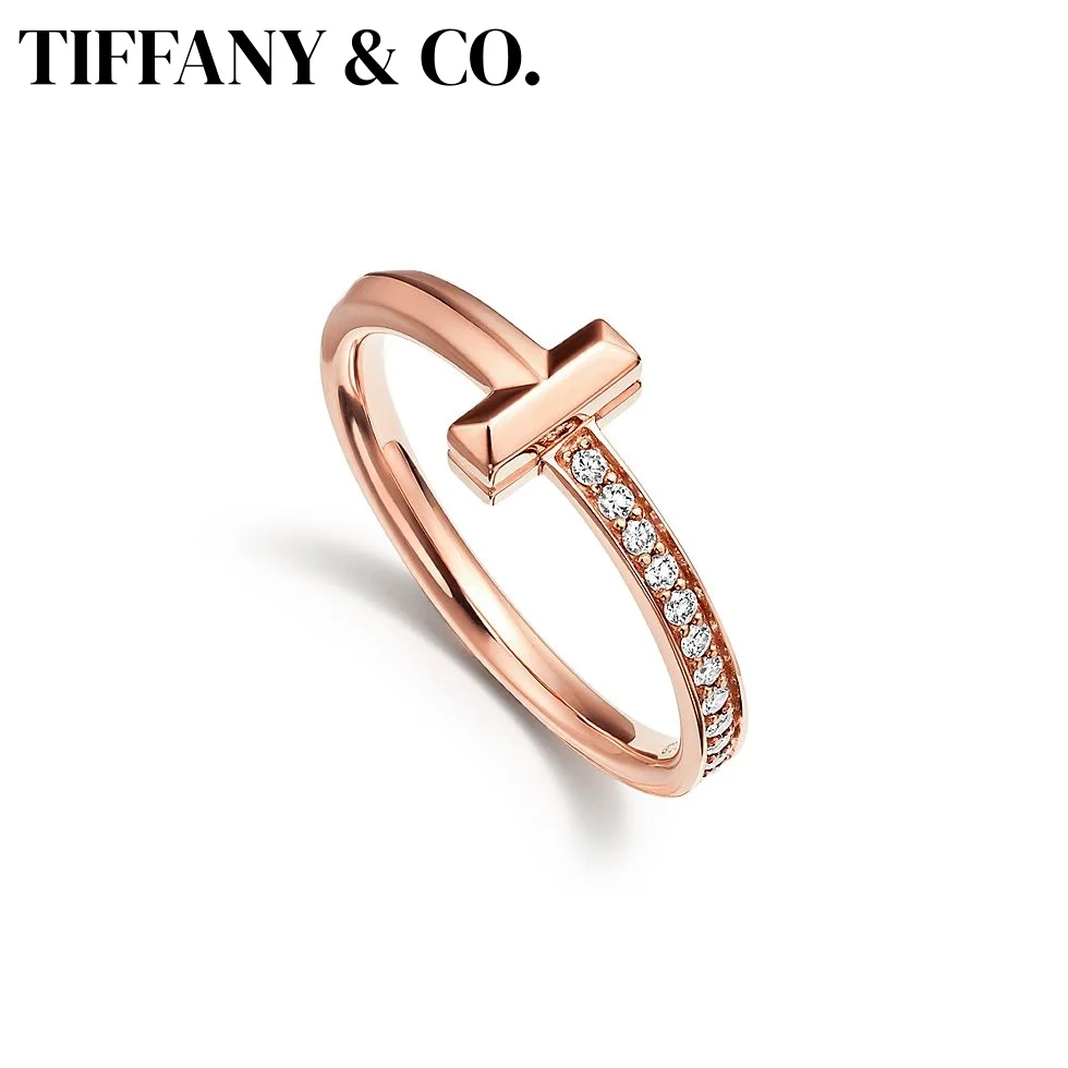티파니 & 코. T-시리즈 반지 커플 럭셔리 오리지널 주얼리 S925 스털링 실버 다이아몬드 반지 웨딩 선물