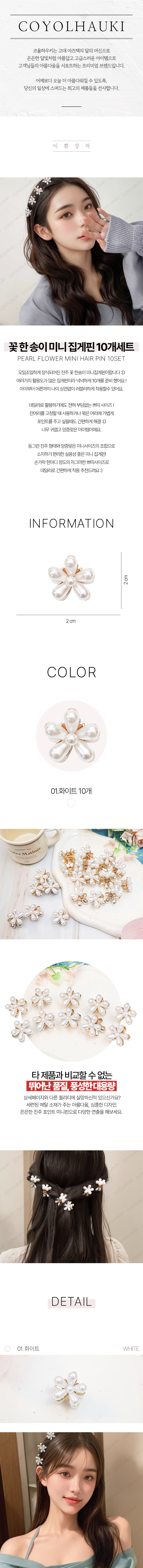 10개입 진주 미니 집게핀 여성 헤어 머리핀 반묶음 앞머리 옆머리 사이드핀 세트