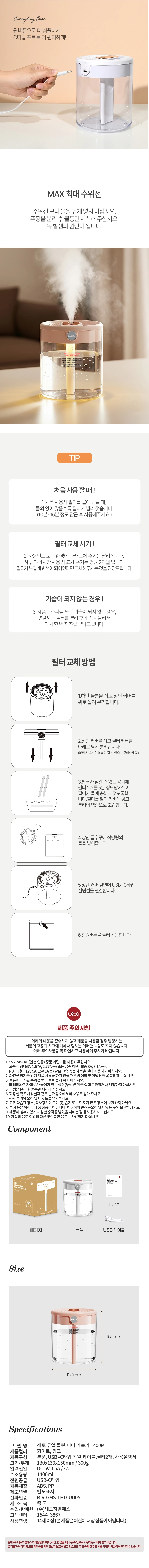 (LETO) 미니가습기 듀얼분사 1400M LHD-UD05