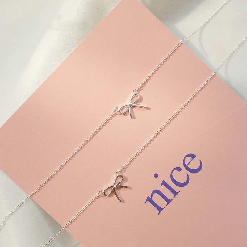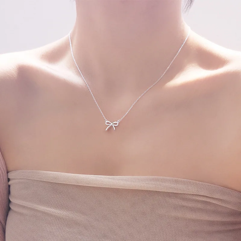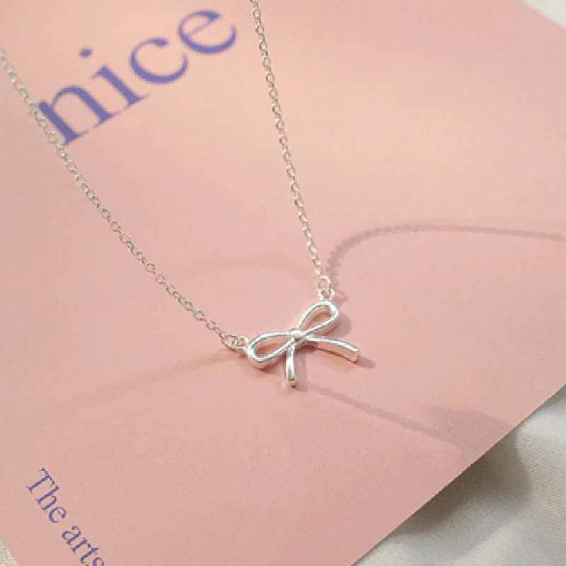 LIVVY 여성을위한 섬세한 실버 컬러 Bowknot 펜던트 목걸이 독특한 디자인 패션 수제 보석 선물
