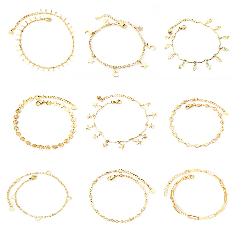 LUXUSTEEL 스테인레스 스틸 Anklets 여성용 팔찌 술 불가사리 매력 다리에 골드 컬러 링크 체인 패션 발 보석
