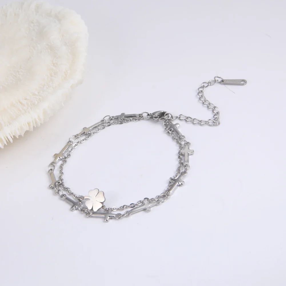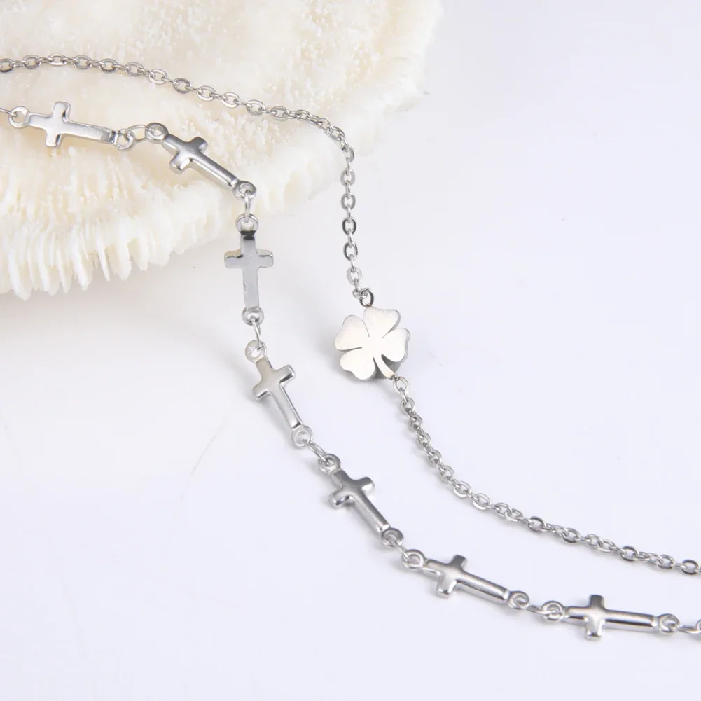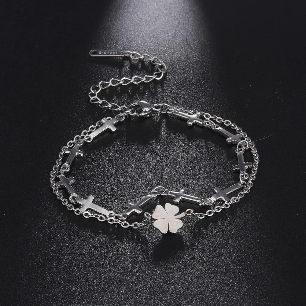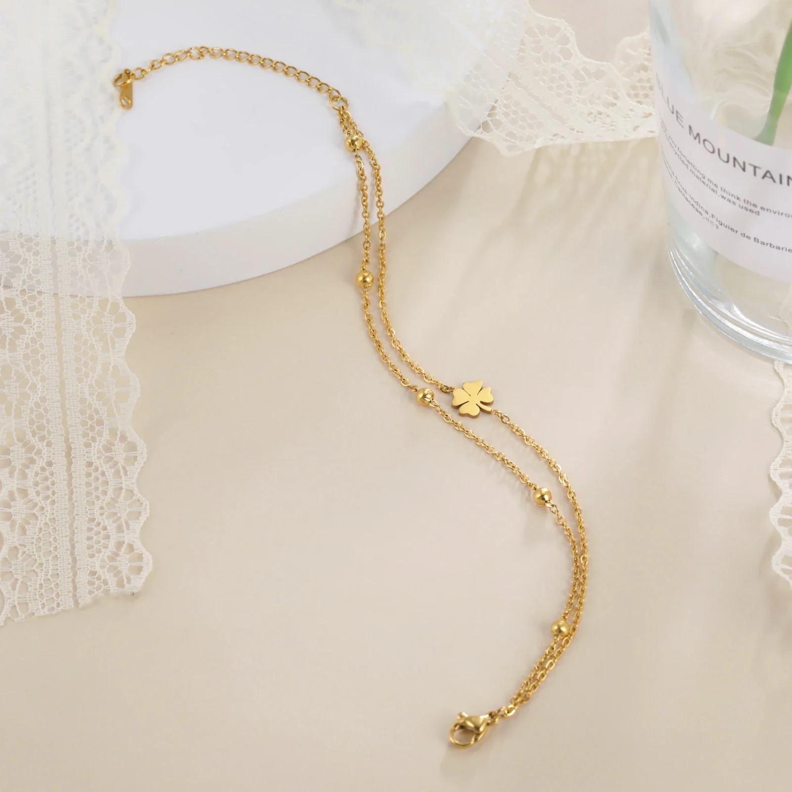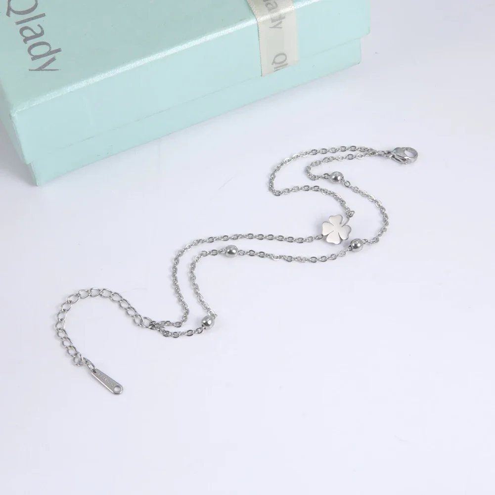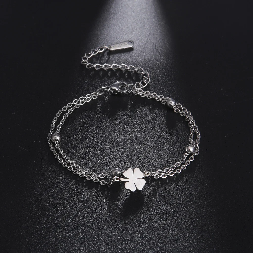 Skyrim 여성용 발 체인, 실버 컬러 네잎 클로버, 스테인레스 스틸 발찌, 심플 비즈, 패션 쥬얼리 액세서리, 신제품