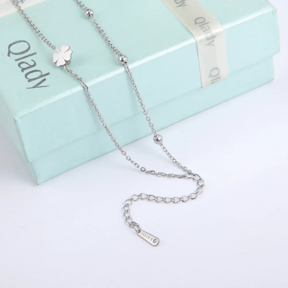 Skyrim 여성용 발 체인, 실버 컬러 네잎 클로버, 스테인레스 스틸 발찌, 심플 비즈, 패션 쥬얼리 액세서리, 신제품