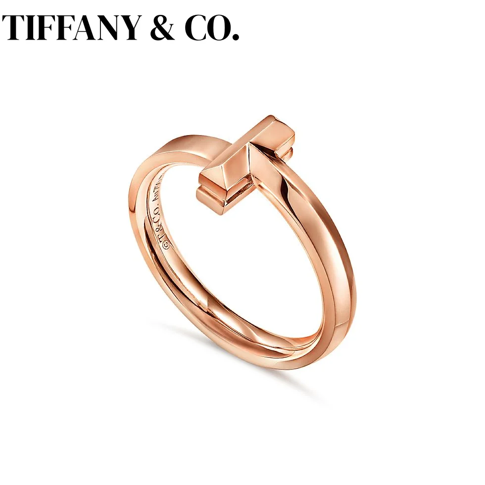 Tiffany & Co. T 시리즈 반지 S925 스터링 실버 오리지널 럭셔리 보석 커플 반지 발렌타인 데이 선물