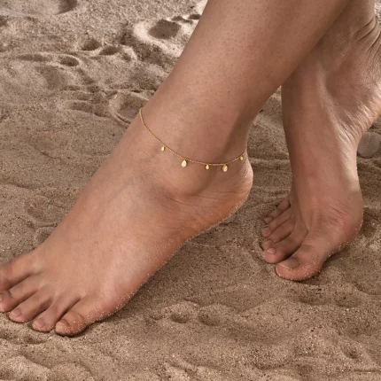 여자를위한 스테인레스 스틸 워터 드롭 지르콘 구두 소녀, 골드 컬러 간단한 발 체인 발목 팔찌 쥬얼리 여름 액세서리
